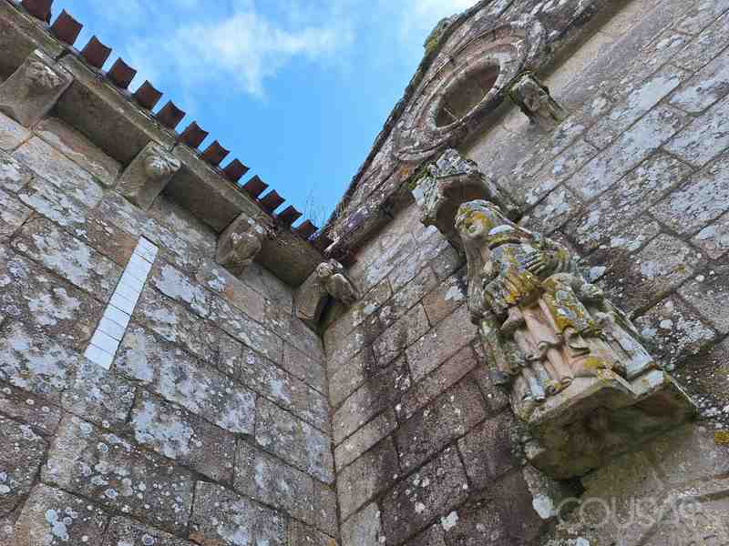 Conserva uns interesantísimos canzorros de diversa tipoloxía, con ferraxes medievais rematados en bocas de serpes nas follas das portas.