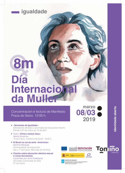 A programación compleméntase con obradoiros de igualdade nos colexios, charla sobre educación afectivo-sexual e novas tecnoloxías para alumnado do IES, un novo mural para salientar o papel das mulleres anónimas e a obra de teatro “Trinta e tantos ósos” (domingo 10 de marzo 18.00h, no auditorio), completan os actos organizados para conmemorar o 8 de marzo.
