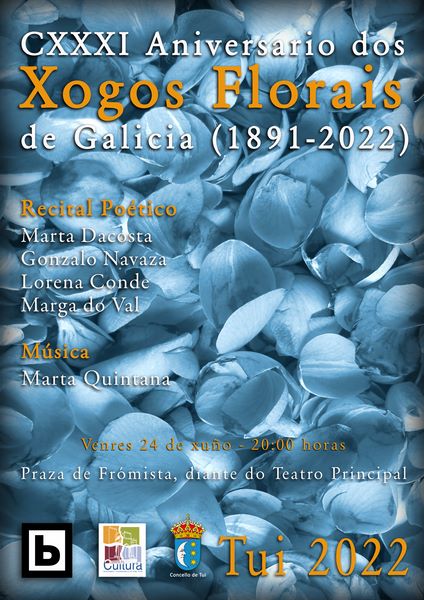 O Concello de Tui, a través da súa concellería de Cultura, conmemorará o CXXXI aniversario da celebración na nosa cidade dos Xogos Florais de Galicia. Tiveron lugar do 24 ao 26 de xuño do ano 1891 marcando un singular fito na historia de Galicia, ao ser o primeiro acto público celebrado integramente na nosa lingua.