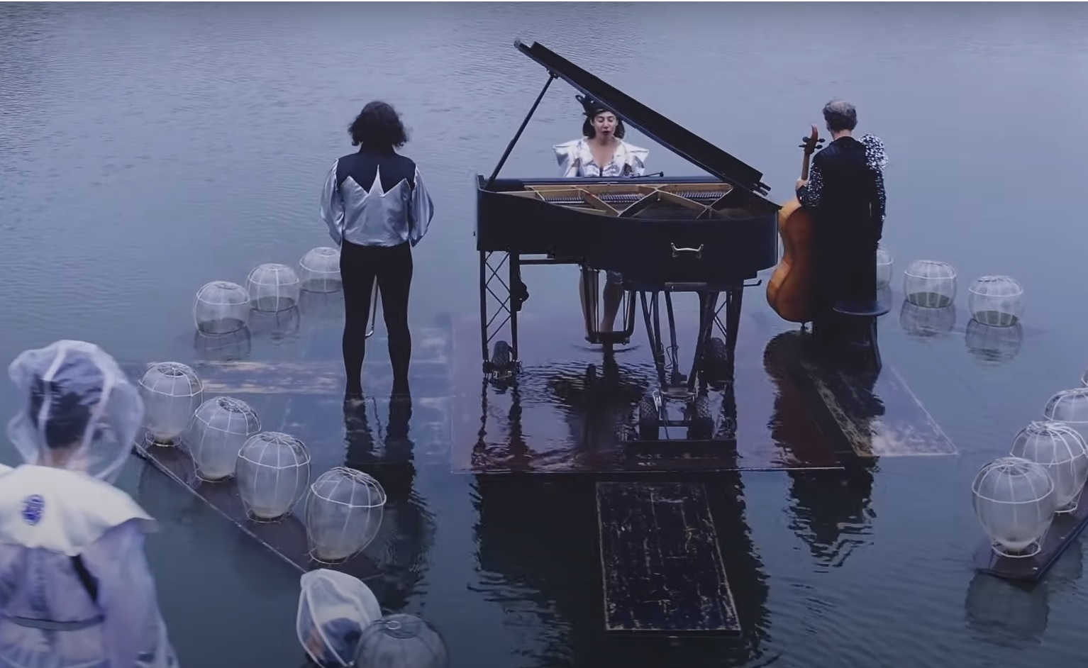 Se xa se superou a sorpresa de ver e oir a 20 pianos soando ao unísono na Ponte Internacional, agora o desafío é aínda maior: Un piano flotante, acompañado dun violoncelo nun concerto/experiencia visual e sonora que navega entre a mini opera pop e a traxedia antiga. A obra titúlase “Dois sistemas solares”, creada pola artista Delphine Coutant, unha muller que se autodefine como ‘unha trobadora do século XXI’, poetisa, compositora, música… A súa obra nútrese dun forte vínculo coa natureza.