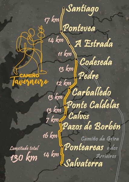 A investigación sobre este camiño xacobeo ten como eixe a reseña nos libros parroquiais de San Paio de Figueroa (A Estrada) dunha anotación sobre a morte dun peregrino no ano 1784. Era un veciño de Santa Baia de Ponte Caldelas, falecido durante a viaxe de regreso da súa peregrinación. Chamábase Ignacio Taverneiro e o nome desta ruta foi posto na súa honra.