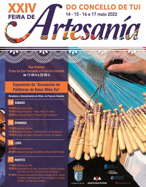 A rúa Ordóñez e as prazas do Concello e San Fernando acollen ata o martes 17 a XXIV Feira de Artesanía de Tui a unha trintena de postos artesáns, celebraranse obradoiros, demostracións de oficios tradicionais e actuacións musicais.